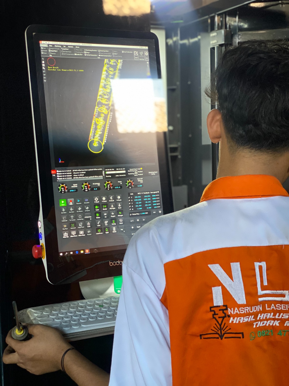Kami didukung oleh mesin laser cutting berteknologi modern (Bodor) serta peralatan pendukung lainnya untuk menangani berbagai proses seperti laser cutting plat dan pipa, bending, shearing, welding, hingga powder coating.
